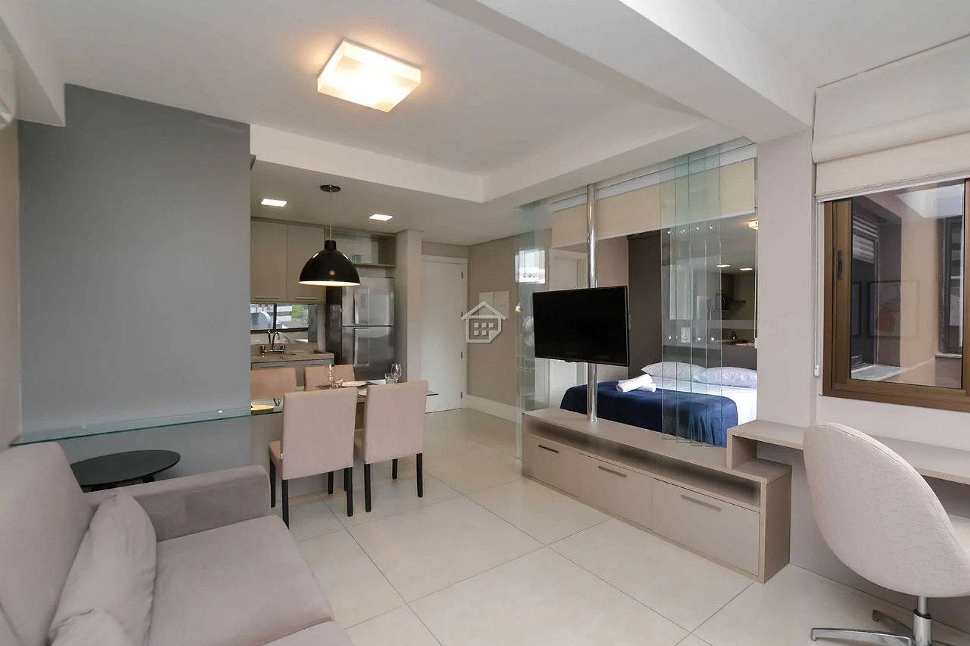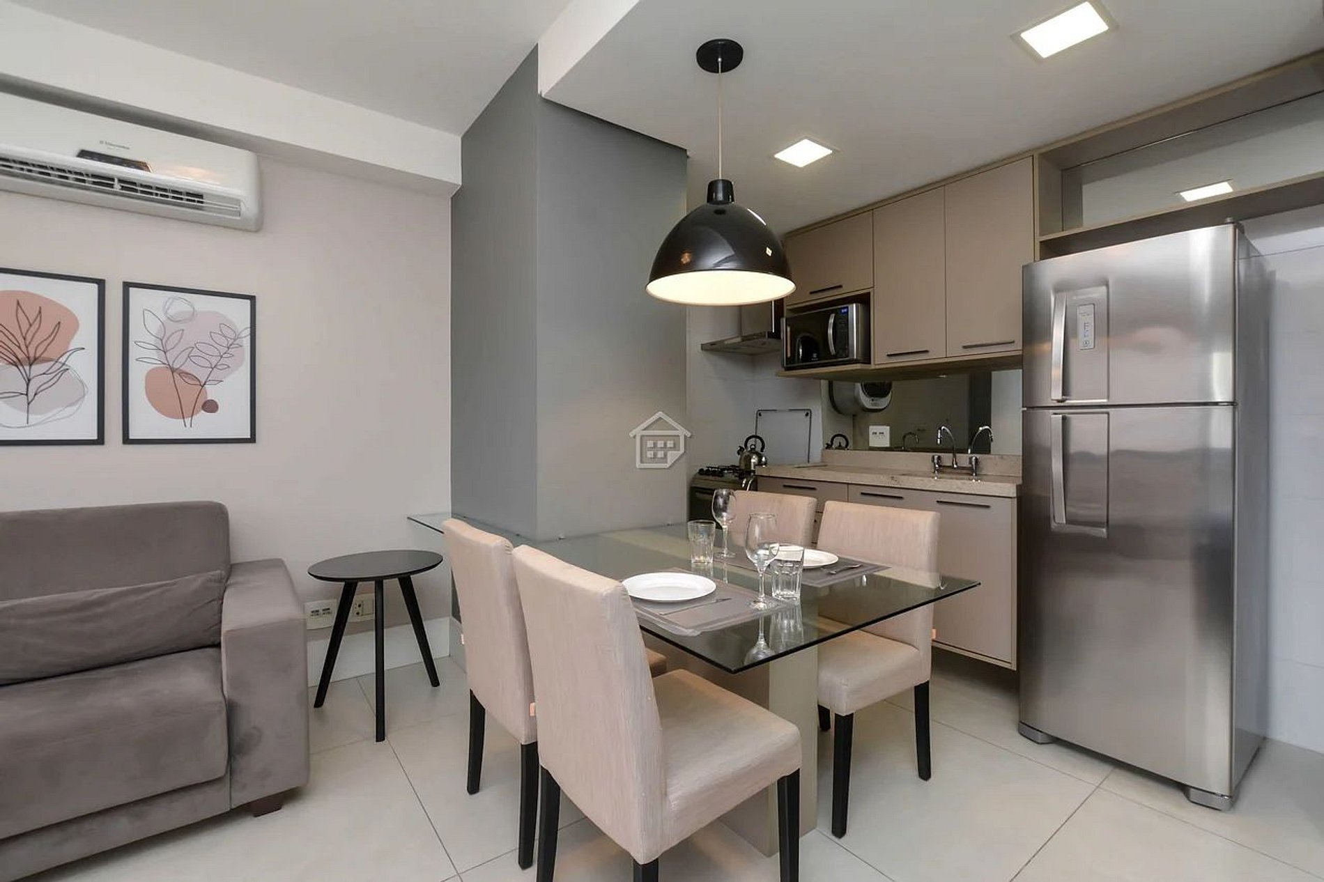 Este imóvel, com uma decoração contemporânea e acolhedora, oferece um enxoval completo. Está equipado com uma TV smart que conta com uma variedade de serviços de streaming, como Netflix, HBO, Prime Video e YouTube, entre outros. Além disso, a conexão de internet de alta velocidade proporciona um ambiente tranquilo e confortável, ideal para trabalhar ou estudar.